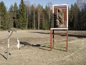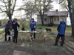 Kilpailukeskuksen isäntä, Jouko Nikamaa, jonka puusepän verstaasta syntyy mm. opasteita kilpailukeskukseen